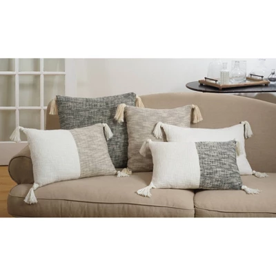 Add a practical yet stylish accent to any couch, chair or bench with this Cream Solid Tasseled Oversize Square Throw Pillow from Saro Lifestyle. Solid and versatile in appeal, this cream throw pillow showcases a subtle pattern and matching tassel accents on each corner to add a nice flair. Beautiful, plush and soft to the touch, this neutral throw pillow easily blends in with any decor, while the soft filling creates cushioned comfort while you’re sitting down and relaxing after a long day.