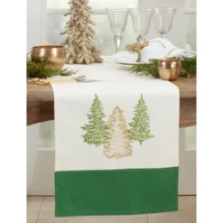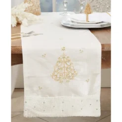 White Snowflakes Table Runner – Saro Lifestyle: Elegant Holiday Decor, Machine Washable, Polyester