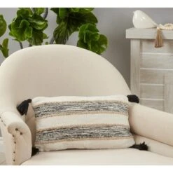 Saro Lifestyle Saro Lifestyle Striped Tassel Decorative Pillow Cover