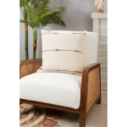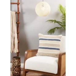 20″x20″ Oversize Woven Striped Design Square Throw Pillow Cover Natural – Saro Lifestyle