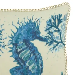 20″x20″ Oversize Sea Horse Design Square Throw Pillow Cover Aqua Blue – Saro Lifestyle