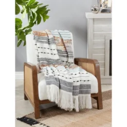 Saro Lifestyle Saro Lifestyle Throw Blanket With Striped Fringe Design, Navy Blue, 50″x60″