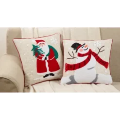 16″x16″ Jolly Snowman Square Throw Pillow Tan – Saro Lifestyle: Festive Decor, Duck Feather Filled