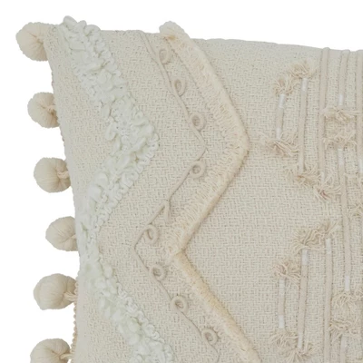 Fill in any room corner and any space with this delightful Cord and Pom Pom Applique Throw Pillow. With a busy design and rich textures, it certainly accents any area. Made with 100% cotton, it brings great comfort and softness.
