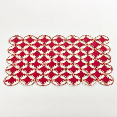 Bring the holiday spirit straight to your tabletop with this lovely cutwork placemat. With Christmas trees in different shapes and sizes and shimmery stars, this table runner makes the perfect foundation for holiday meals. Coordinate with solid color napkins and charger plates.