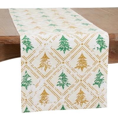 The Christmas Trees Design Table Runner is the perfect backdrop for your holiday meals, especially celebrations and special occasion. It features a rich pattern with golden accents that elevate the style of your tabletop. You can easily pair the cotton runner with matching placemats and table napkins to achieve a coordinated look.