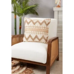 20″x20″ Oversize Textured Zig Zag Woven Down Filled Square Throw Pillow Ivory – Saro Lifestyle